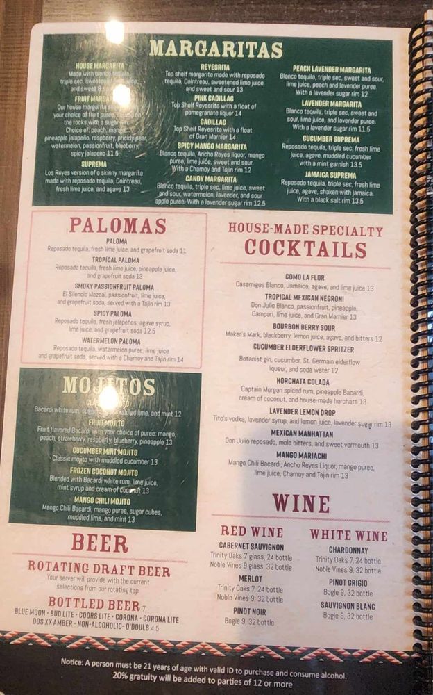 Los Reyes Restaurante Y Cantina Menu (2025 Update)